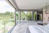 Nestled between the courtyard and veranda, the open-concept living area effortlessly extends to the outdoors through a series of aluminum clad folding glass walls.