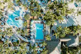 3 p.m.: I get a call that our rooms are ready, so we head back. We’ve been set up with a waterfront three-bedroom suite, which usually runs at several hundred dollars a night (they also comped my visit). We look at our map—a reminder we’re in Florida: the Gulf of Mexico has been renamed on it—and weave our way past the hotel restaurant/bar. All four pools (one of which is specifically adults-only) are surrounded by vegetation and hidden speakers blasting pop music, making them feel like they’re in the jungle, albeit a jungle-slash-club. The rooms are all housed in two- or three-story stilted town houses, and ours make up half of one full building. They’re designed so they can be used as one, for a family, or two, with one bedroom on the ground floor and the others connected upstairs, including a sitting room with a television and bar. I take the first floor so I can step off the deck onto the sand, which has more chairs and hammocks overlooking the water. The vibe is strikingly similar to where my in-laws have a place in the mid-Atlantic, another bastion of beach culture; the rooms are yet again muted in tones with blues as the pop of color, with tons of space between furniture. I’m beginning to realize that the beach aesthetic, and overall vibe, is: let’s remind you of the outside, you want to be outside, nothing can touch outside. The kitsch you might associate with any rental house in this kind of town is nowhere to be seen here.