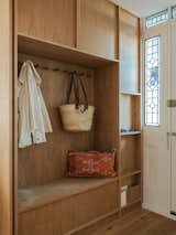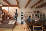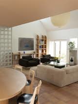 Bowman found the salvaged wood for the mantlepiece and gifted it to the couple on completion of the project. The Uchiwa Lounge Chair and Ottoman, and Mags Soft Low Sofa are both by Hay, with a Flos light overhead. The painting above the sofa is by Georgia Young and the painting on the fireplace is by Solee Darrell.