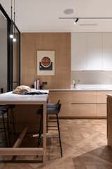 The building is situated in a quit center of Kiev where traditions are mixed with novelty. So we decided to use the same concept with the interior and make it timeless. Our Versailles parquet floors combine with simple painted walls. And contemporary furniture combines with vintage and iconic interior products. Such as Papa Bear and Etcetera lounge chairs, Louis Poulsen and Astep lights, Knoll chairs, Muuto vase, etc. Apartment is filled with Ukrainian Art.