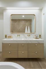 This 240 sq.m. space was created by joining three small apartments into one. We had to destroy all existing walls and build the new one. Our goal was to create a comfortable space for a family of three including toddler. We divided it for sleeping and living areas. The first one has 3 bedrooms, 3 bathrooms and 2 closet rooms. The second one has living room, kitchen with dining area and a playground for toddler.