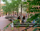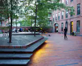 Archipelago Courtyard is a communal 6,000 square foot landscape serving the residents of the surrounding building. Terrain was asked to re-think the use and potential of what was previously a barren field of brick paving. Terrain developed a series of islands within a new field of paving.