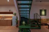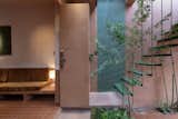 The original staircase had the carpet removed and the wood tread restored.