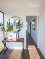 Film director and journalist Christian Johnston designed and built this as one of the early case study test houses for his "stealth" mode pre-fab home company Sustainable Building Council. It has proven to be one of the only scaleable solutions for California and it's affordable housing crisis capable of producing 480 units per month under $200 a sqft. This modern feeling house features some of the most cutting edge gird-independent power and water creation units in the country. It's first visitor was L.A. Mayor Eric Garcetti who after seeing it engaged Johnston and his Sustainable Building Council to help design and build temporary housing and homeless shelters for Los Angeles. The company will unveil 18 new projects at the end of May throughout the country.