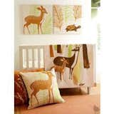 Baby Max’s bedroom (in his parents' Los Angeles A. Quincy Jones house) is outfitted with a Gulliver crib and a red PS cabinet, both from Ikea, as well as a Birds in Harmony mobile by Christel Sadde and Katsumi Komagata for the Museum of Modern Art Store. The custom “I brake for unicorns” neon sign is from Let There Be Neon, a shop in New York City.