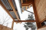 The construction consists of five glulam timber frames, on which everything else hangs. The rough and exposed wood construction makes it easily understandable, and useful when making customized solutions and additions with changing needs.