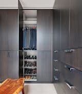 The green Quartzite that was used for the vanities has also been used to create a storage nook in the shower.