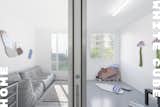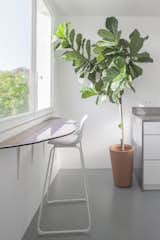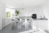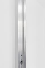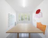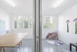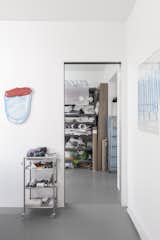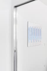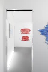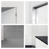 Limits between the archives, studio and gallery space and the rest of the home have been carefully blurred, however not denied. As previously mentioned, the floor is a continuous surface, but each room has a different shade of gray, swinging doors are perfectly flush with walls, but anodized-aluminum-paneled door jambs contrast with the whiteness of walls.