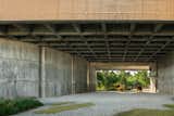 The pink hue of the concrete is inspired by the minerals in the surrounding landscape. Alongside the grasses and brush, rosy rocks abound.