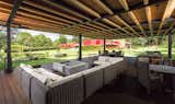 A completely new garden design integrating a covered terrace to the side overlooking the central lake was made. The lake is connected to a river that runs through the field to get the running water, a very important element in the whole project . The terraces and pools of water connecting the interior with the exterior and allow you to enjoy the pleasant ambient temperature to be enjoyed throughout the year .