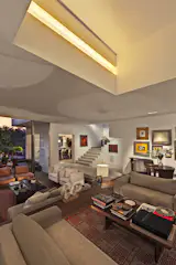 The house is divided in three and a half levels. In the intermediate floor the number and proportion of windows was increased to take advantage of views to the forest and gain entrance of natural light. There was also a total change of the window screens to integrate the terraces and open areas to the interior of each space maintaining a bond with all the services.