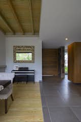 On the entrance floor the kitchen is located and is the heart of the house and one of the most important spaces for the family. It has its own terrace besides the direct relation with the living and dining rooms. There is also communication with the laundry and maid quarters. Giving the topographic characteristics of the land it was decided to place the garage in an upper level.