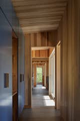 During site excavation, a collection of large, glacial boulders was discovered. Ken, who is interested in geology wanted to keep them on property, so Signal Architecture worked as many as they could into the landscape. The slatted fir wall separates the home’s dining area from the guest wing.