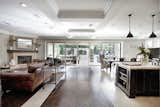 The outside of the home is Mediterranean and the inside is modern clean traditional. The kitchen shelves are custom eastern pine driftwood. We cut them vertically and finished them with a custom faux finish. The countertops are Beaumaniere limestone, the fireplace mantle is solid Douglas Fir wood, and the great room floors are floated Crema Marfil marble.