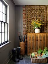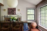A new kitchen at the front of the house completes the trifecta of reworked rooms on the main level. It fits nicely into the notion of balancing new and old elements throughout the house, with oak detailing married to exposed brick, offset by strip lamps. The Hee bar stools are by HAY, the Caravaggio P3 pendants are by Light Years, and the range oven is from Britannia.