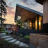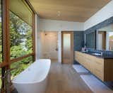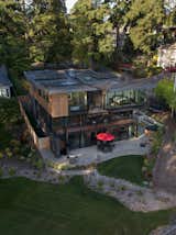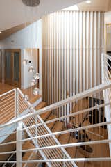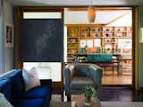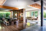 Inside, the home is full of original details—all of which was recently restored for a new generation of owners. Such details shown here include terrazzo floors, kiln-dried posts and beams, locally made walnut bookshelves, copper fireplace surround, and level-5 plaster walls.