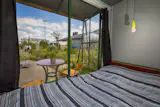Floating Bricks is a tiny cabin that sleeps three people; a comfy hammock can be hung above the double bed.