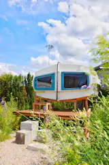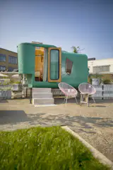 Little Pea, one of the most popular sleeping pods, was made out of discarded animal food silos collected from the Dutch countryside.