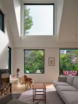 The minimalistic decoration stems from the original blank-canvas idea, but it also allows flexibility in each room. Movie nights with a projector and playdates for the kids can happen almost anywhere. Still, there’s always a central place for special objects like the family’s artisanal animal ceramics and the twins’ drawings and watercolors.