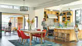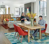 The dining area features an ash table designed by Desai Chia and created by Gary Cheadle. The chairs are by Jens Risom.