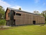 The home's east-facing front side is windowless due to its facing a busy train line.