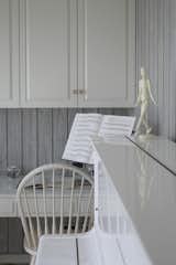 In the bathroom, a custom ceramic backsplash designed by Meredith and Sample joins an iroko-wood tub created by their students a the University of Toronto. In spaces where the tiles don't need to be cut around corners, outlets, or other obstacles, it might even be possible to do the tile work yourself for a DIY project.