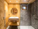 Grace Boyd’s favorite room has a stunning view of Puget Sound reflected in the Hinoki tub she had custom-sized by Roberts Hot Tubs. The clean lines of soaking tubs “work well in conventional bathrooms,” says Roberts’ Andrew Harris, “no need to make the whole room Japanese-style.” Grace echoed the grey of the sea and sky in the sinks and the silvery pebbles around the tub. After 32 years in West Seattle, she asked architect Mark Travers to build her a new house in the same spot- she couldn’t bear to lose her view. Tubs are popping up in real estate listings as a selling point; new owners can have an existing tub sanded to reveal a fresh layer of pristine scented wood. Photo courtesy of: Roberts Hot Tubs