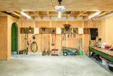 Shahane kept the exterior entry, which is now the everyday entry for the family. A mudroom here contains the visual clutter from coats and shoes from collecting upstairs. Large-format bluestone tiles, specifically Catalina Belgian Bluestone hammered with chiseled edge, have "a lot of texture and character,