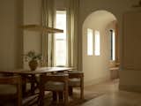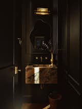 Mirei Monticelli’s Nebula suspension lamp presides above the primary bathroom’s Clovis Goods tub and Woodbridge filler. The Roman shades are from Pro Design.