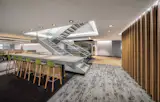 Entering an open space, we find the most attractive element for users and visitors, a central bar with different amenities: coffee maker, beer dispenser, mini bar.