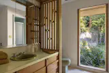 The home’s interiors are divided by translucent shoji screens with bamboo matrices.