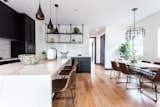 The blush-colored Rojo Alicante marble table in the center of the kitchen doubles as a dining table and kitchen island. A Craiglist score for $200, the table is another kitchen hack conceived by the architects. “It was really a diamond in the rough. Originally, it was a rectangle shape, in a weird ’90s, Italian kind of style, covered in a thick, resin-like finish that made it look almost orange,” says Daniel. The table was honed down to soften its color, and its top was reshaped with rounded corners.