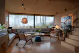 In the living room, a wooden sculpture by local artist Dan John Anderson sits in front of a Mags sectional from Hay.