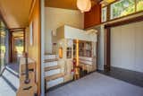 The clients loved the sound of rainwater splashing onto the rock outcropping and didn't want to lose it, so the design team rigged up a spout that deposits water at the right place to accentuate the sounds the clients love. They then had the idea to collect and recycle the water back on the roof so that the tonal experience can be enjoyed in the dry summers as well.