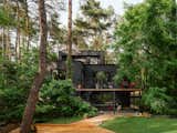Josh Kjenner's design devoted a majority of the square footage to ground-floor public areas: a combined living-dining-kitchen area that's conducive to entertaining. The kitchen stools are by Bouclair.
