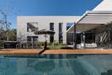 The flooring is oversized slabs of slate from Brazil, while the millwork is all teak. The owners were big sailors and the teak is a nod to them as it's used in boat construction and decking. "It worked really well with the neutral palette," Krulle says.