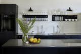 The couple's daughter reads in the cozy nook just inside the front door painted in a vibrant blue from Benjamin Moore. Of the storage area below, Fredrik says, "In Sweden, there's always a place to sit and take off your shoes. This is a version of that."