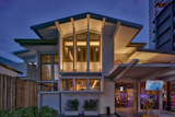 The expanded kitchen has a large central island, with room for prep, seating, storage, and cooking. The cabinetry is a mix of wood, Shinnoki Milk Oak, and white fronts, Fenix NTM Bianco Kos. The terrazzo counters are by Concrete Collaborative. There are two types of tiles: the Mutina Rombini fluted tile on the island and Cepac Krave Sugar Tiles on the backsplash. “It looks very mid-century modern,” says Blaine of the backsplash tile. “But in this application, it also adds that little touch of depth that I think is really important to making the house feel interesting.” The counter stools are from Hay.