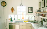 "One of my favorite moments in the house is the window above the vanity in the guest bath,