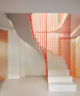 Cirkus Modular track lights by AGO inspired the color for the stairwell, also referred to by the architects as the "stairway to heaven.