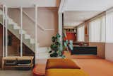 The existing primary bathroom was condensed to make space for a small powder room. Stuart chose a Kohler sink that's been in production since the 1950s.