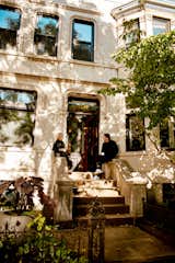 Katie and Bruce love color, which they injected into almost every room. Built-in furniture in the primary bedroom is painted in Benjamin Moore’s Enchanted Forest, and cabinetry in the closet is covered in greenish-yellow Dark Linen, also from Benjamin Moore.