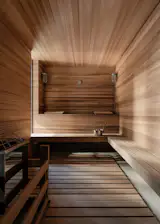 Queenstown gets cold in winter, hence the installation of a sauna. Outside, the landscaping was kept deliberately casual, with rock walls and gravel paths.