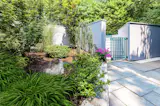 A heated 50-foot gunite pool overlooks the perennial garden and surrounding woods.