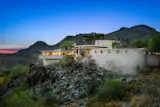 Fruit trees and over forty varieties of roses surround the Italian marble saltwater pool.
