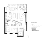 The linear suspension pendant by Michael Raasch provides up and down lighting over the island. Like the cabinetry, the countertop is also done in Fenix. "The owner liked the idea of consistency,