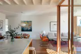 Situated in Emporio, Santorini's biggest village, the home blends the region's iconic white facades with a contemporary interior.