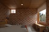 Karen and Brian’s home is a vibrant new addition to a block of midcentury bungalows in Vancouver, British Columbia. One of the volumes is clad in untreated tongue-and-groove Western red cedar. The other is covered in multicolored cedar shakes, which are skewed at an angle that aligns with the slope of the roof. Architect Clinton Cuddington of Measured Architecture worked with the owners to fine-tune the unconventional pattern and color palette. Concrete from the building that formerly occupied the site was repurposed for the stoop.
