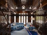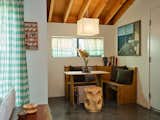 An outdoor fireplace and courtyard create what Twohill calls a distinct “territory” between the main house (right) and the new addition while maintaining privacy for both dwellings. “The courtyard is particularly important because the family loves being on the ground,” he says. The stools are from Martin’s furniture company.