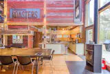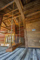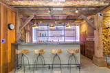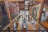 The dark, timber-clad walls and ceilings recall the building's pastoral heritage while presenting a calming oasis for guests to sleep, read, and unwind.